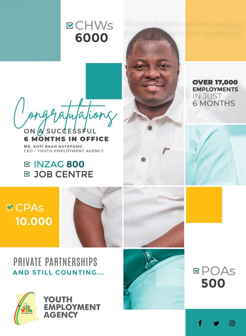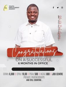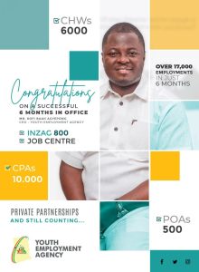 The Chief Executive Officer of the Youth Employment Agency – YEA, Mr. Kofi Baah Agyepong has engaged the services of Seventeen Thousand (17,000) Ghanaian Youth within a space Six (6) months in office.